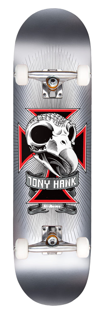 This professional premium quality Birdhouse Tony Hawk Skull 2 Chrome Foil Complete Skateboard measures 7.75" wide x 31.25" long and is ideal for every skill level. Skate street, pool, park or vert. It has tons of pop. It includes trucks, wheels, bearings, hardware, and grip tape. Factory assembled by Birdhouse Skateboards and ready to skate right out of the box.