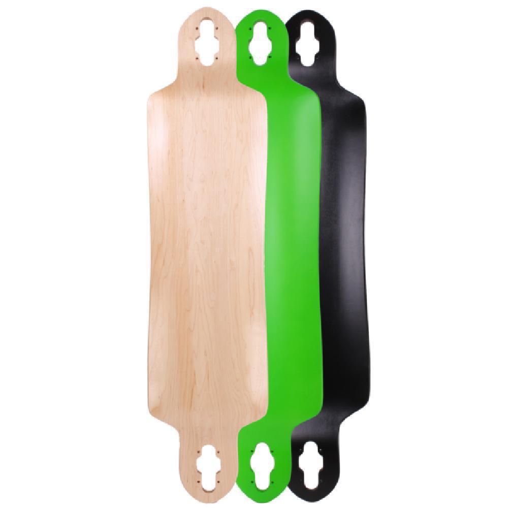 Awesome 40.75" x 9.75" Drop down and drop through Canadian Maple deck with "W" concave. It is called a Lowrider as well. Great Longboard. This drop-through drop-down longboard is stable due to its low profile. There are 3 colors available.