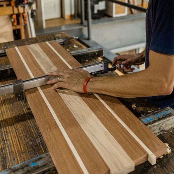 Each board is brought to its final dimensions through a blend of precision machining and hands-on shaping. This hybrid approach preserves the natural beauty of the wood while allowing the shaper to dial in the curves, taper, and contours that give every deck its own character. Quality control isn’t a single step — it’s continuous. Throughout the shaping process, every surface, edge, and transition is inspected and refined to ensure the deck looks as good as it rides.