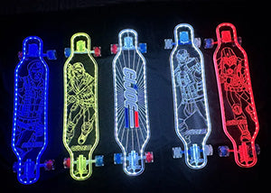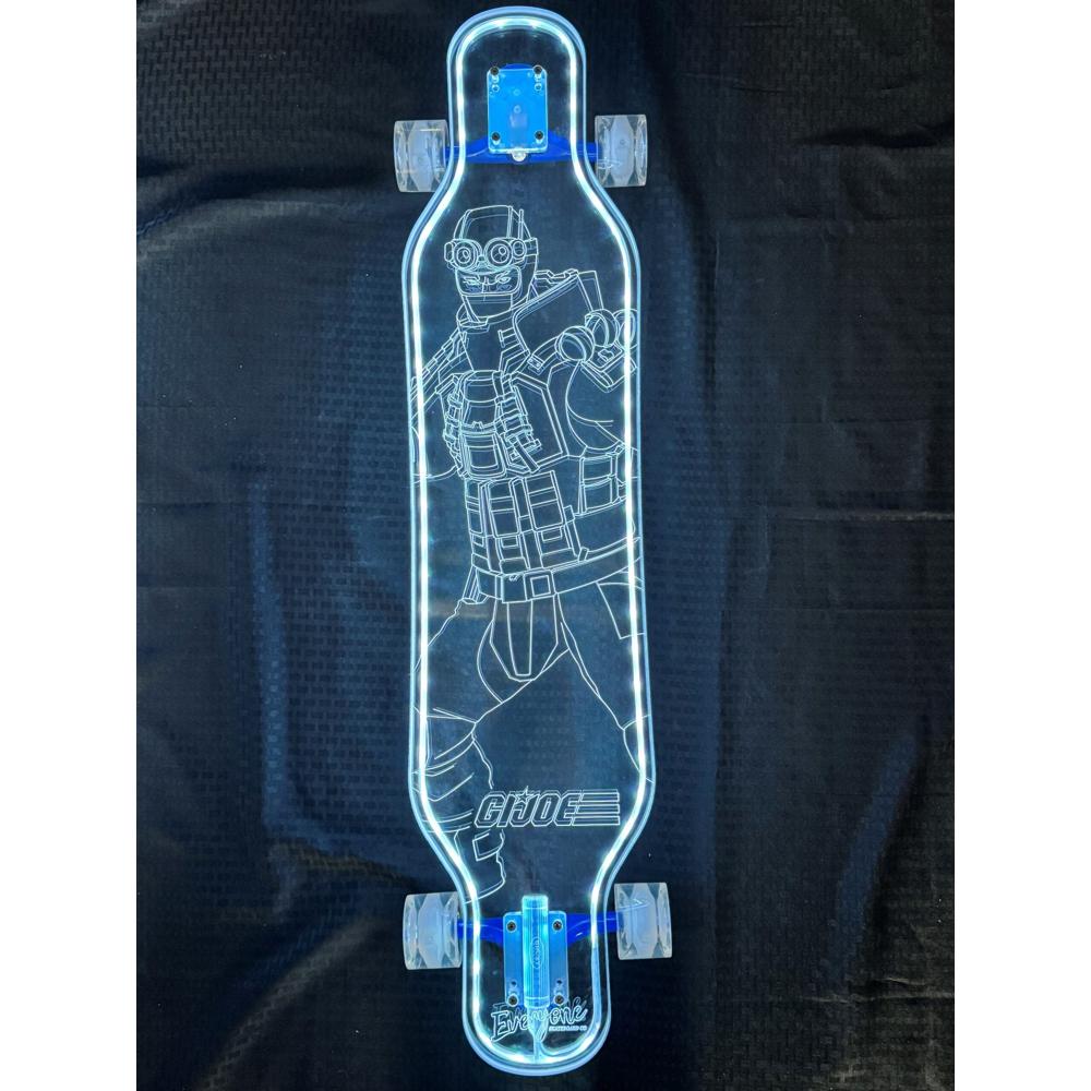 Developed through the collaboration between G.I. Joe, Everyone Skate, Ghost Boards, and Hasbro, the Firefly model blends collector appeal with premium ride engineering. The symmetrical platypus-style top-mount acrylic deck provides predictable handling and reliable stability, while 180 mm Ghost trucks, ABEC 7 bearings, and smooth 70 mm wheels deliver fluid motion and confident maneuverability. Riders who want to amplify the visual impact can expand the lighting system with additional LED options, allowing customizable color control that enhances visibility and personal expression without complicating the ride.